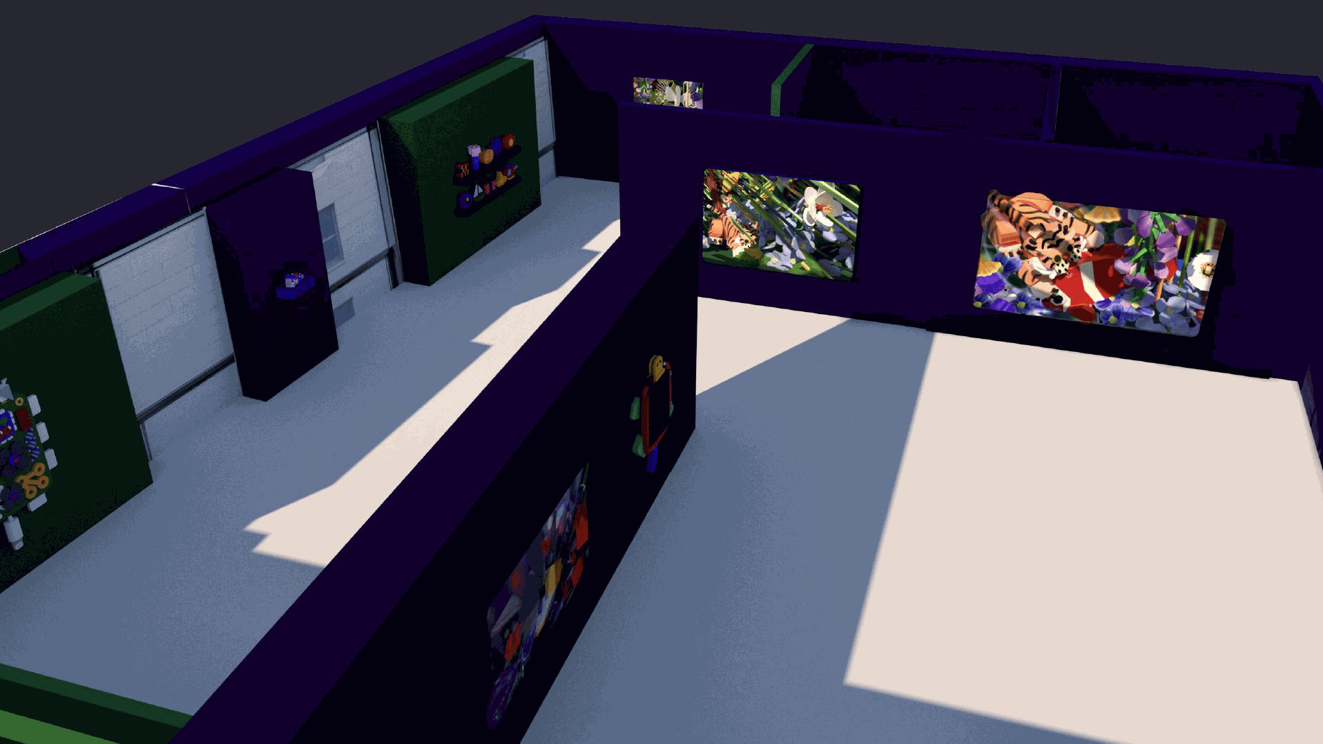 Incorporating the skills he acquired while studying architecture at university, Tim would use 3D modeling software to assess the wall surfaces in the gallery space and would make notes on anything that inspired him to continue experimenting in the future. The gallery space and artwork layout for in silico were constructed in a 3D model and were experimented with for many months prior to the final launch. The hybrid methodology of working with analog and digital is something that he intends to reflect through his works.
